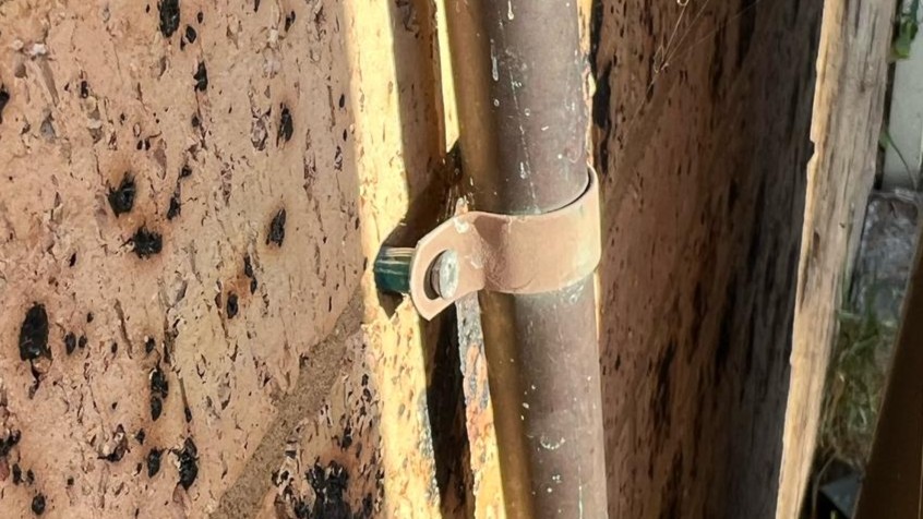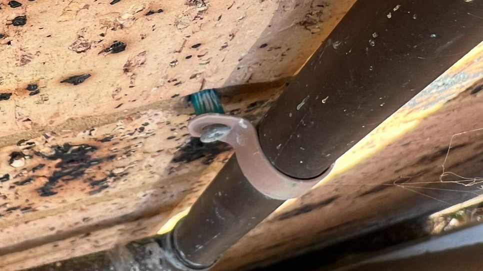 In the example above, downpipe brackets are fixed into the mortar with a green plug and screw. This shows a common problem. We’ve all seen things like lights pulling out from walls or gate posts hanging off. More concerning are cases where heavy items like air conditioning units are only held by plugs or sleeve anchors in the mortar, which can be dangerous.